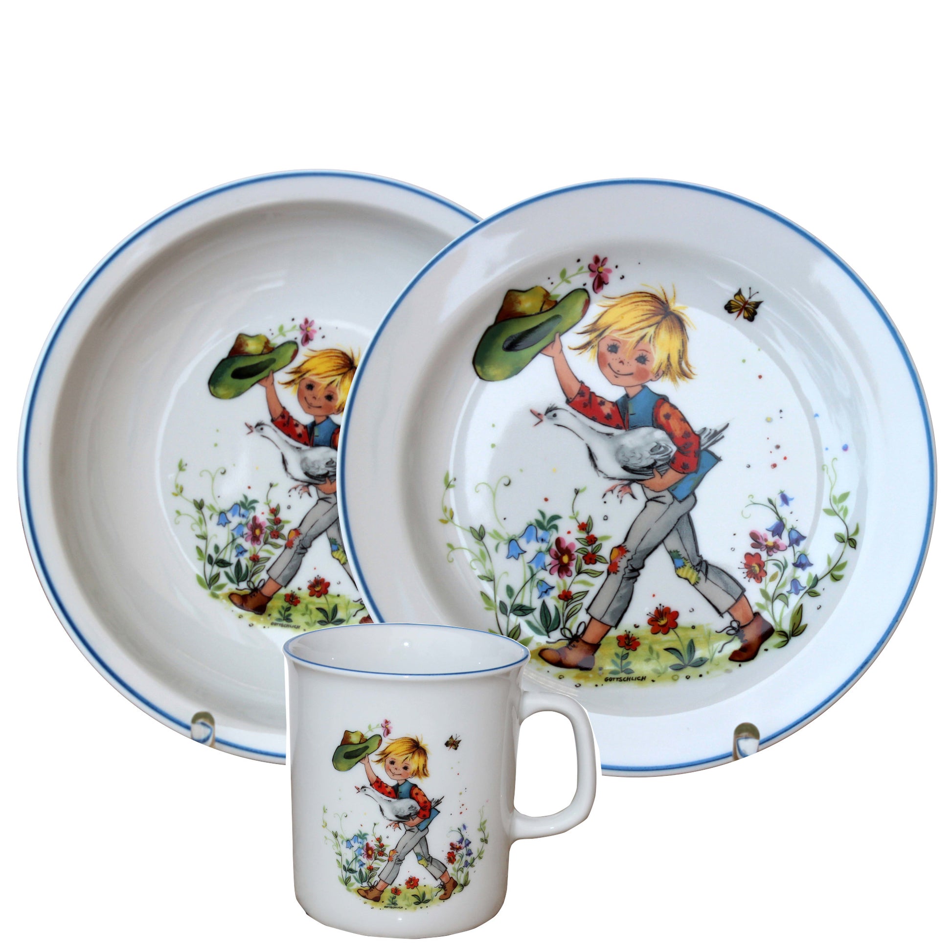 modernes Kindergeschirr Set Porzellan 3 teilig Hans im Glück